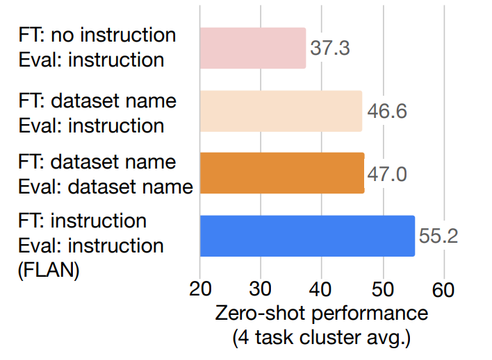 - GPT-3의 경우 해당 task만 제외했는데 FLAN은 해당 cluster dataset 전체를 제외