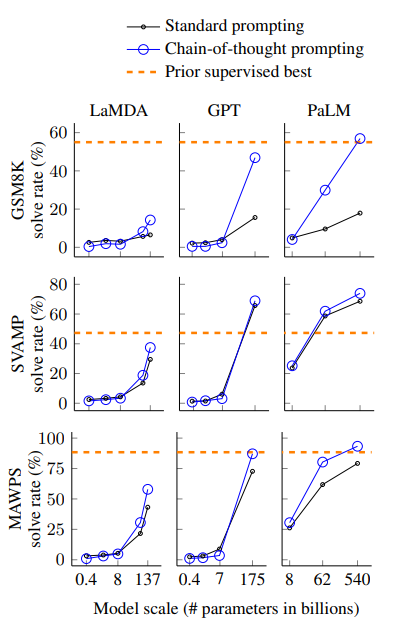 - <input, output>이던 구조에서 <input, chain of thought, output> 로 중간에 생각하는 단계를 넣어줌