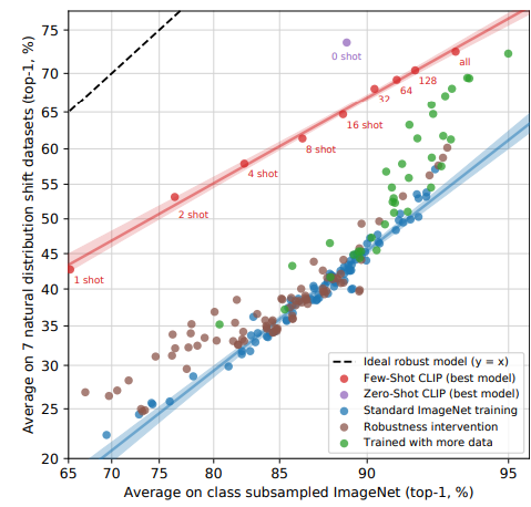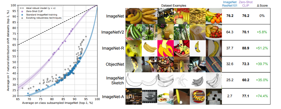 - CLIP이 더 다양한 task에서 강건한 성능을 달성함을 보여줌