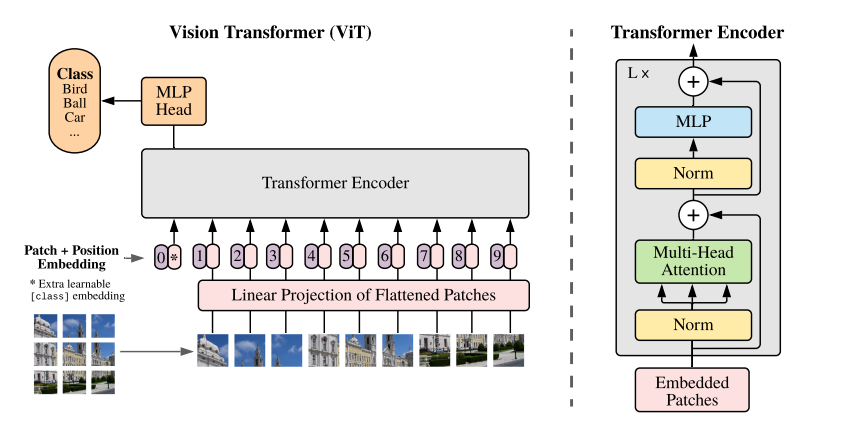 - Transformer 구조에 이미지를 patch로 쪼개 하나의 토큰처럼 입력