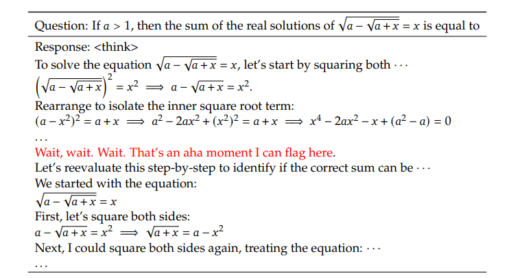 - DeepSeek-R1-Zero 모델이 추론 과정에서 스스로의 답변을 개선하는 "Aha moment"를 발견함