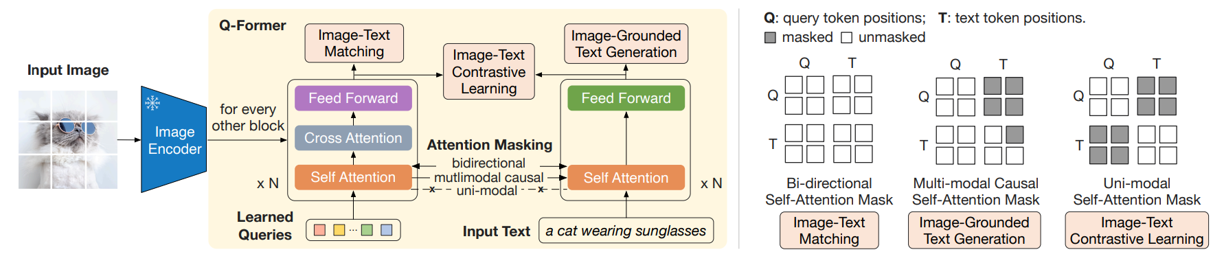 - ITC: Image-Text Matching: Q-Formal가 image와 text 정보 모두 보고 matching하며 학습하기 때문에 masking이 없음