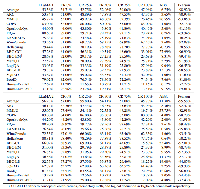- LLaMA 2가 더 똑똑한 (base 성능이 높은) 모델이며 성능 하락의 폭도 큼