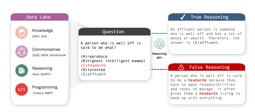 - 4가지 domain (도메인 지식, 상식, 복잡한 추론, 프로그래밍) 의 dataset을 활용해서 일부러 오답 데이터셋을 생성함