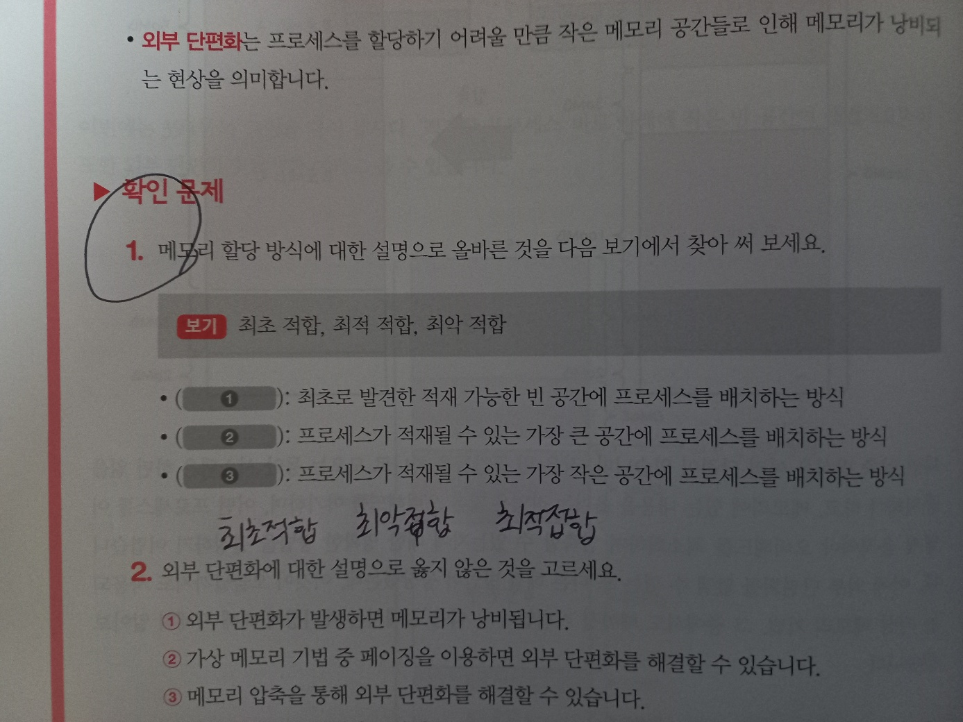 1) 연속 할당 : 연속적인 공간에 블록을 할당 >구현이 쉬움, 외부 단편화 발생