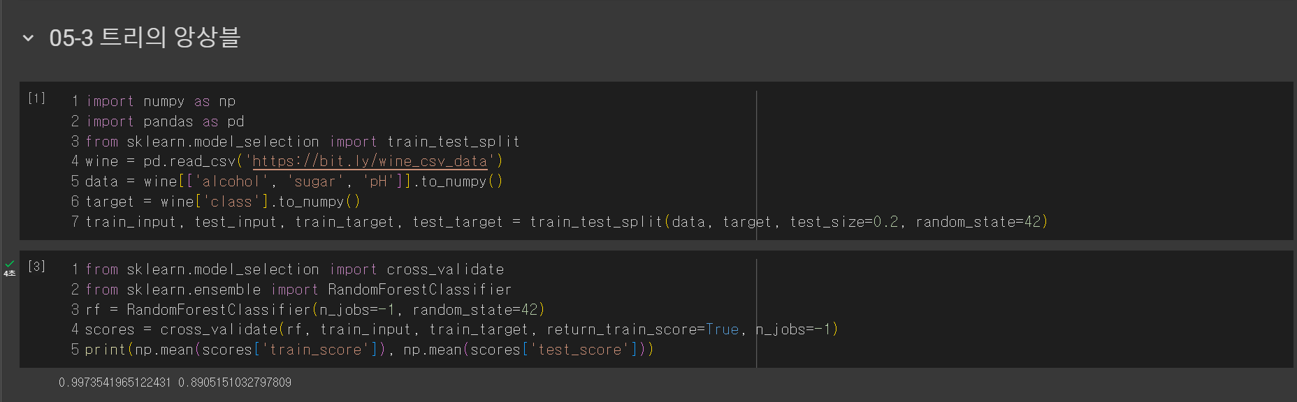 Ch.05(05-3) 앙상블 모델 손코딩 코랩 화면 인증하기