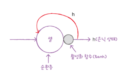 순차 데이터란 순서에 의미가 있는 데이터를 말하고, 이 순차 데이터에 잘 맞는 인공 신경망 중 하나가 순환 신경망이다. 앞에서 배운 모델들은 FFNN이라고 연산 결과를 출력층(앞으로)만 보내지만 RNN은 연산결과를 자신에게 다시 보내 연산에 사용한다. 이는 이전 연산 결과를 다시 사용하는거니 메모리를 사용한다고 할 수도 있다. 이 순환층을 셀이라 부르며, 셀의 출력을 은닉 상태라한다.