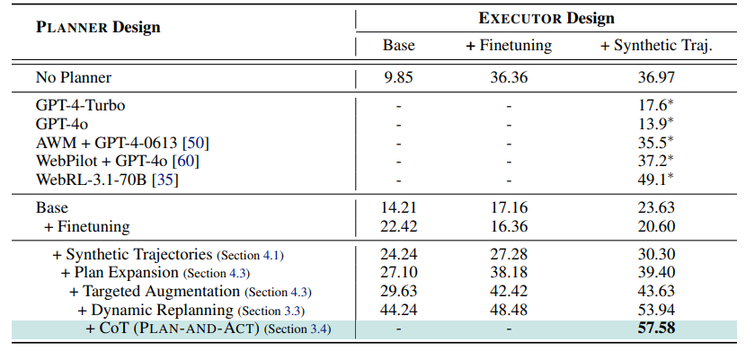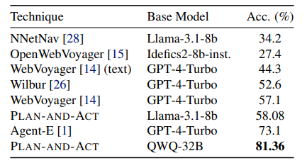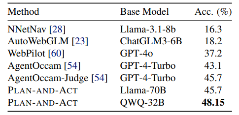 - PLAN-AND-ACT는 작은 모델로도 높은 성능을 보임